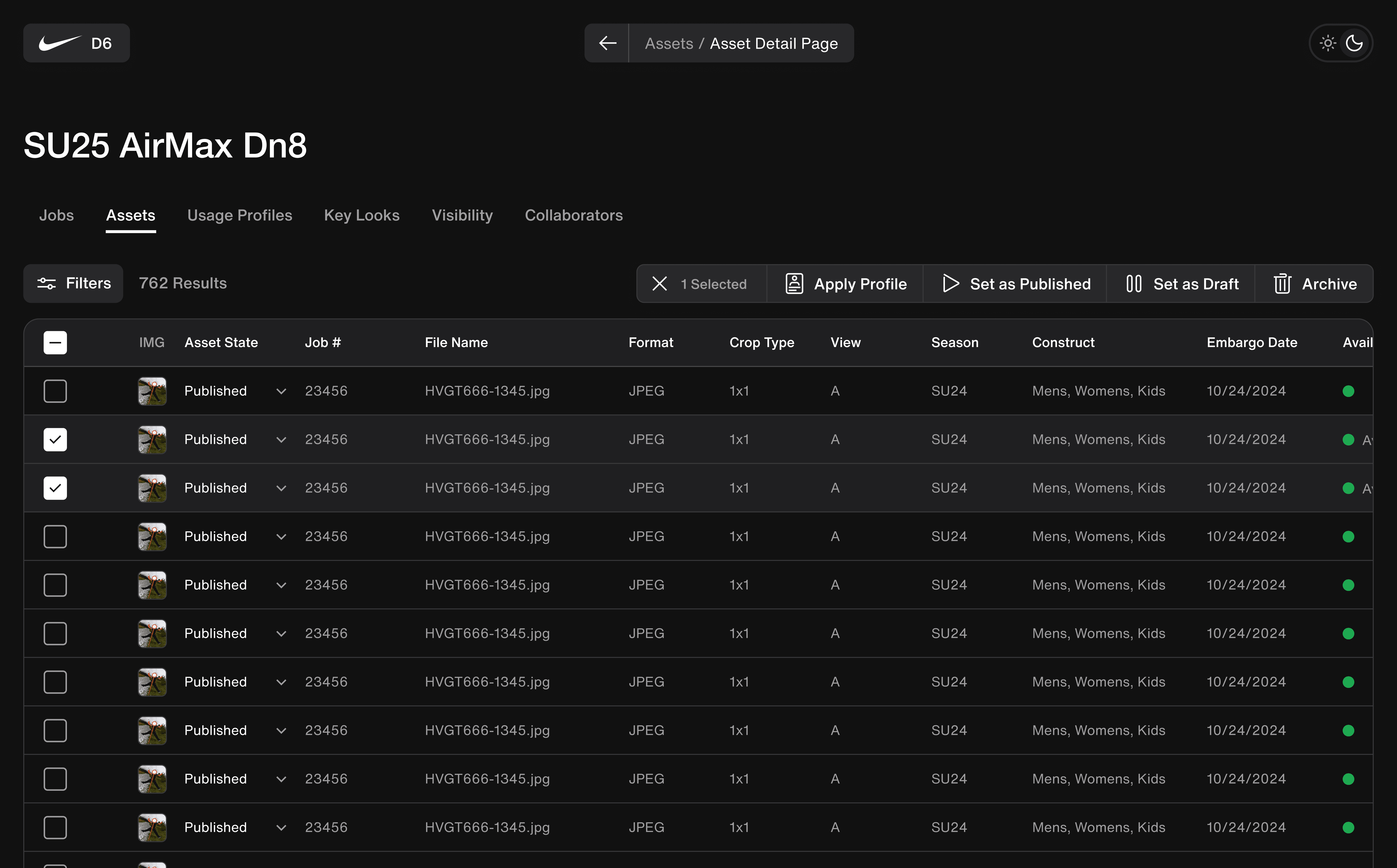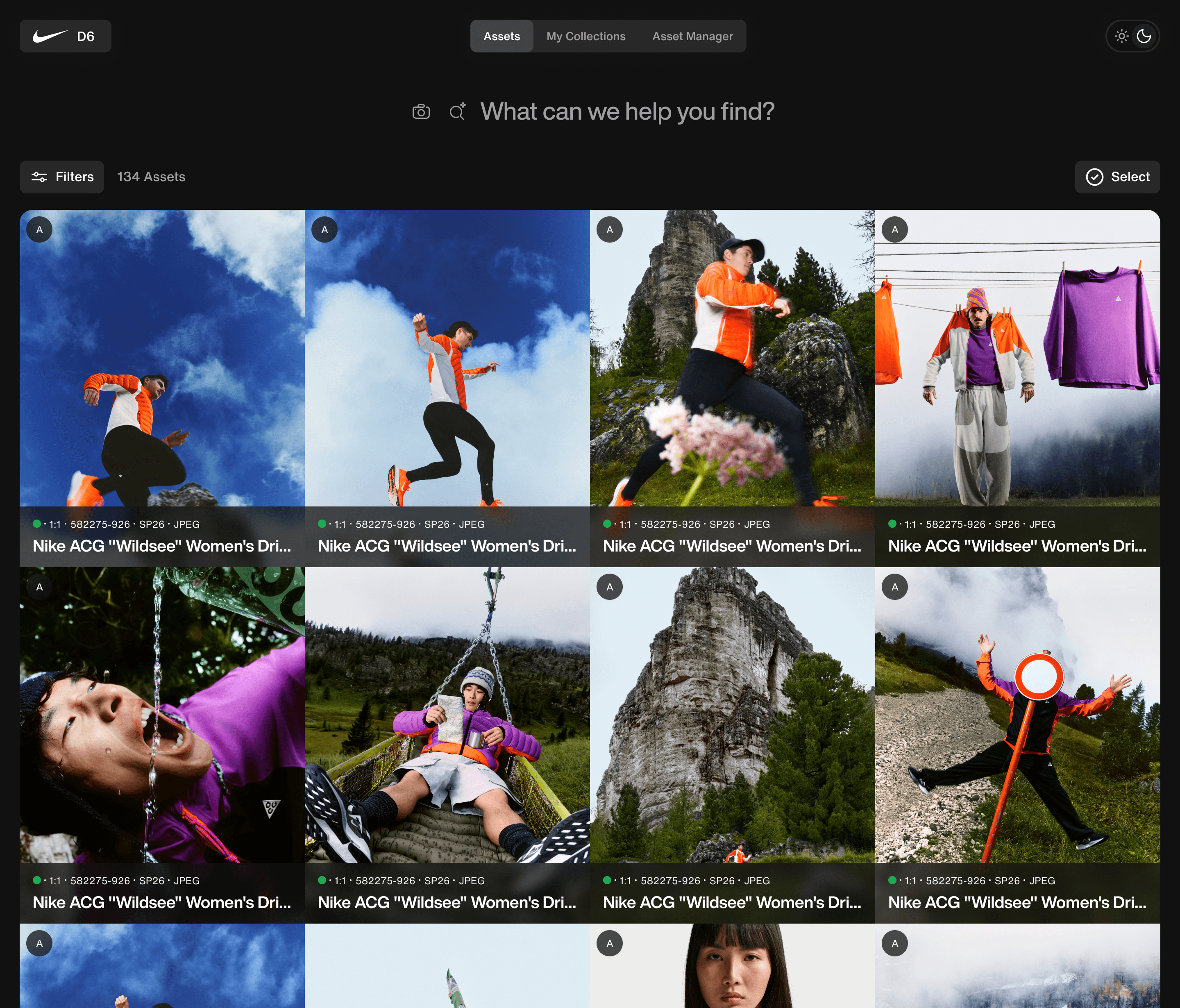 Nike’s teams produce hundreds of thousands of assets every season across .com, .net, retail, and global marketing. The old system could store assets, but it couldn’t help teams find them, understand how to use them, or maintain consistency across channels.